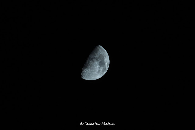 そして帰宅途中、ずっと曇ってた空に月が見えたので、少し車を止めて何枚か撮影してみました(^^)